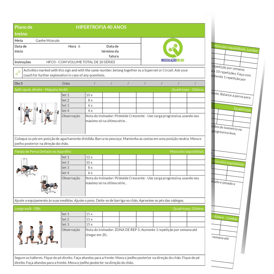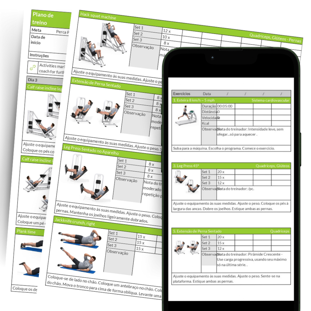 Treino em PDF com fotos dos exercícios para você conferir