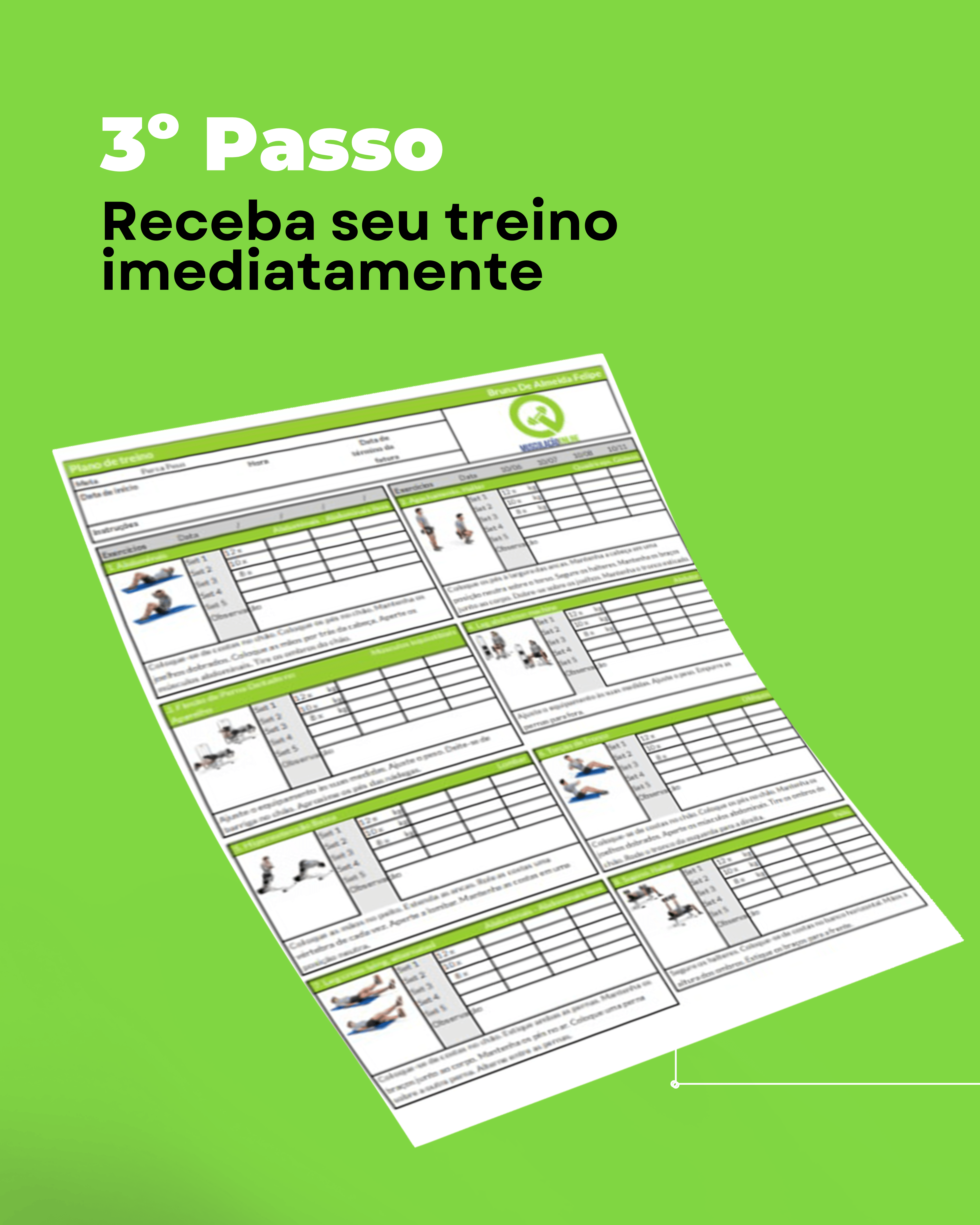 Em até 2 dias úteis depois do preenchimento da avaliação e envio das fotos com roupas de treino.